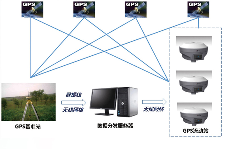 利用GPS測(cè)繪儀、電子全站儀對(duì)探測(cè)、檢測(cè)的埋地管道特征點(diǎn)(起止點(diǎn)、拐點(diǎn)、三通點(diǎn)、四通點(diǎn)、弧斷點(diǎn)進(jìn)行高精度測(cè)繪),現(xiàn)場(chǎng)測(cè)量采用GPS-RTK技術(shù),即一臺(tái)GPS基準(zhǔn)站和多臺(tái)流動(dòng)站同時(shí)作業(yè),通過(guò)相對(duì)定位技術(shù)快速獲取厘米級(jí)定位結(jié)果,在建筑物密集區(qū)或其他GPS信號(hào)受限制的區(qū)域采取GPS+電子全站儀協(xié)同測(cè)量的模式對(duì)探測(cè)、檢測(cè)數(shù)據(jù)進(jìn)行位置采集,已達(dá)到高精度測(cè)繪的目標(biāo)。
