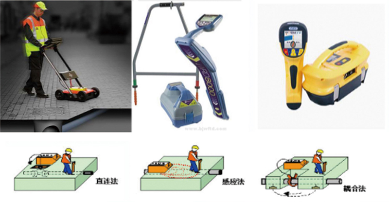 其基本工作原理是由發(fā)射機(jī)產(chǎn)生電磁信號(hào),通過(guò)不同的發(fā)射連接方式將信號(hào)傳送到地下被測(cè)管道上,地下管道感應(yīng)到電磁信號(hào)后,在管道上產(chǎn)生感應(yīng)電流,感應(yīng)電流沿著管道向遠(yuǎn)處傳播,在電流的傳播過(guò)程中,通過(guò)該地下管道向地面輻射出電磁波,當(dāng)管線定位儀接收機(jī)在地面探測(cè)時(shí),就會(huì)在管道上方的地面上接收到電磁波信號(hào),通過(guò)接收到的信號(hào)強(qiáng)弱變化來(lái)判別地下管道的位置、走向和埋深。