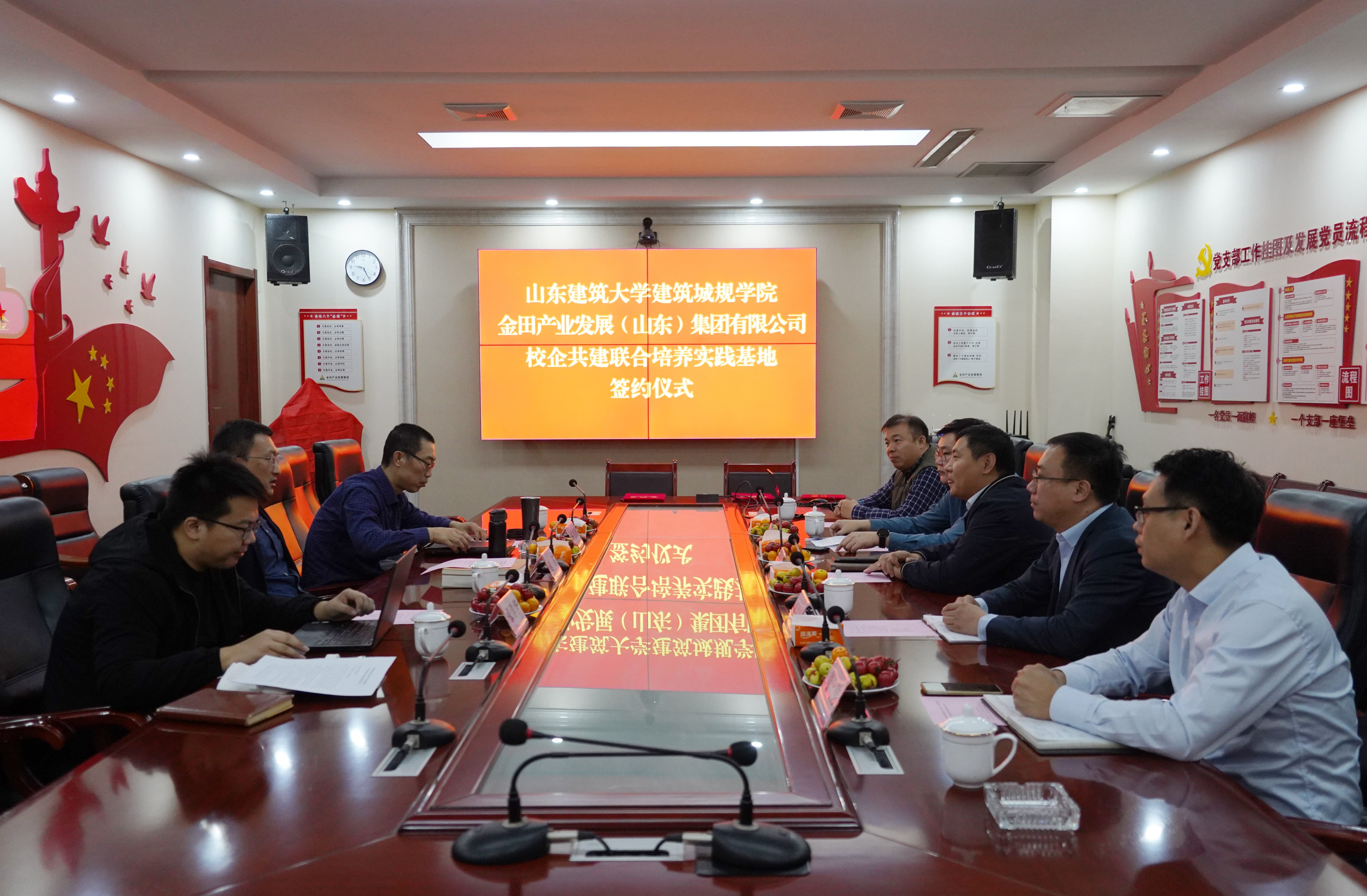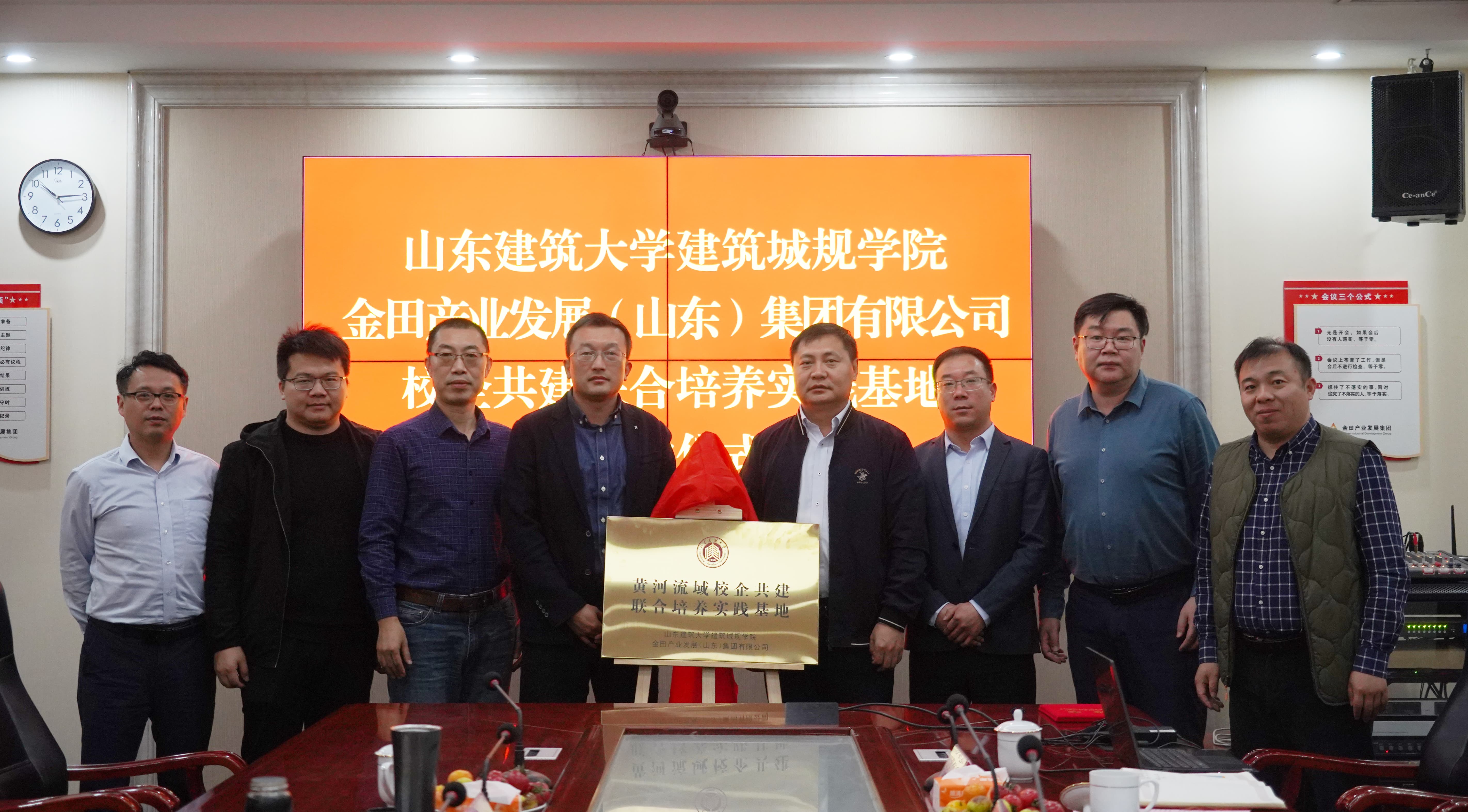 10月18日,金田產(chǎn)業(yè)發(fā)展集團(tuán)與山東建筑大學(xué)建筑城規(guī)學(xué)院“推進(jìn)黃河流域生態(tài)保護(hù)與高質(zhì)量發(fā)展校企共建聯(lián)合培養(yǎng)實(shí)踐基地”簽約揭牌儀式在金田產(chǎn)業(yè)發(fā)展集團(tuán)成功舉行。山東建筑大學(xué)教授、建筑城規(guī)學(xué)院副院長(zhǎng)趙亮,山東建筑大學(xué)副教授、山東建筑大學(xué)國(guó)土空間規(guī)劃研究所所長(zhǎng)林偉鵬,山東建筑大學(xué)建筑城規(guī)學(xué)院規(guī)劃專業(yè)研究生事務(wù)秘書張洋華。金田產(chǎn)業(yè)發(fā)展集團(tuán)董事長(zhǎng)魏卿,副總經(jīng)理徐其民,金田空間規(guī)劃院常務(wù)副院長(zhǎng)蓋建,副院長(zhǎng)董大偉,金田菏澤公司執(zhí)行董事、規(guī)劃三所所長(zhǎng)宗飛,共同參加座談和簽約揭牌儀式。