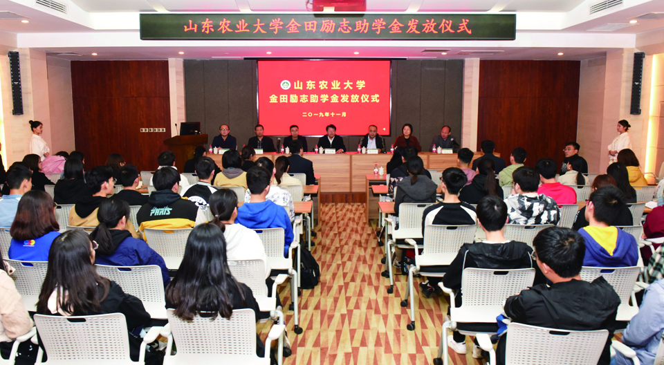 11月6日,公司2019年金田勵(lì)志助學(xué)金頒發(fā)儀式在山東農(nóng)業(yè)大學(xué)國(guó)重樓一樓報(bào)告廳順利舉行。山東農(nóng)業(yè)大學(xué)黨委副書(shū)記楊天梅、公司副總經(jīng)理陳芝信、校學(xué)工處處長(zhǎng)王群、校團(tuán)委書(shū)記孫麗、信息學(xué)院院長(zhǎng)李西燦、水土學(xué)院黨委副書(shū)記殷子惠等同志出席了儀式,發(fā)放儀式由資環(huán)學(xué)院黨委書(shū)記朱寶庫(kù)同志主持。