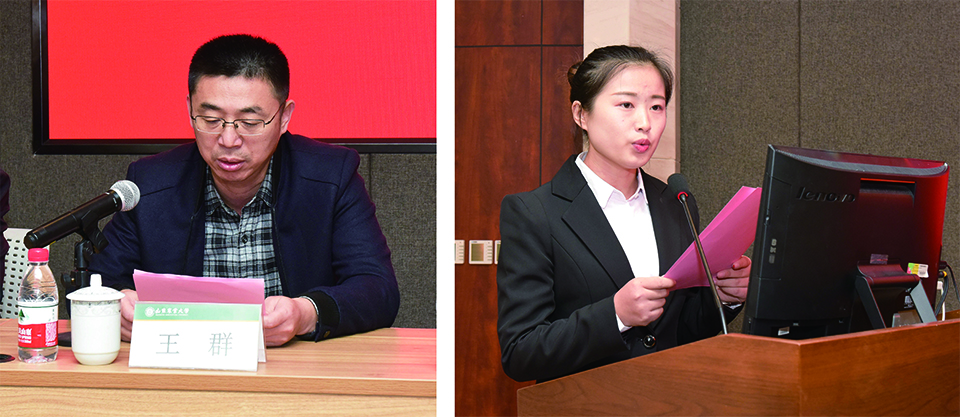 王群處長(zhǎng)首先宣讀了《關(guān)于表彰山東農(nóng)業(yè)大學(xué)金田勵(lì)志助學(xué)金獲獎(jiǎng)同學(xué)的決定》,來(lái)自資環(huán)、水土、信息學(xué)院共45名同學(xué)獲得了助學(xué)金。資環(huán)學(xué)院受助學(xué)生代表王真真發(fā)言,對(duì)學(xué)校的培養(yǎng)和公司的資助關(guān)愛(ài)表達(dá)了感謝,并表示將不忘初心,勤奮學(xué)習(xí),實(shí)現(xiàn)從受助到自助,勵(lì)志成才、自強(qiáng)不息;牢記使命,甘于奉獻(xiàn),實(shí)現(xiàn)從自助到助人,回報(bào)母校、回饋社會(huì)。