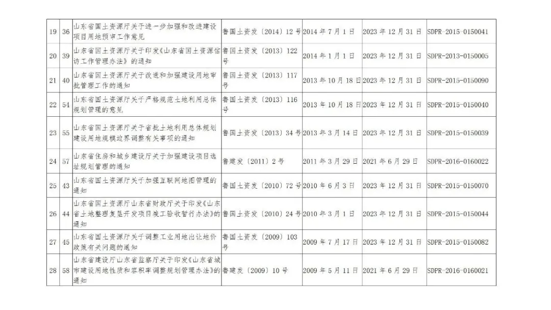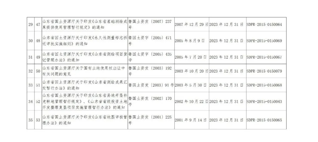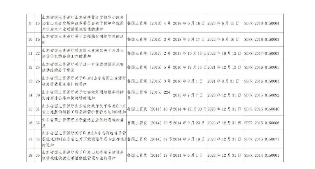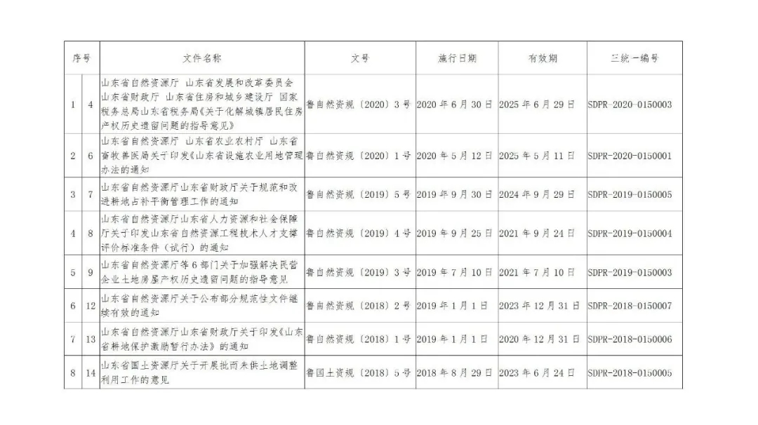 山東省自然資源廳繼續(xù)有效的規(guī)范性文件目錄